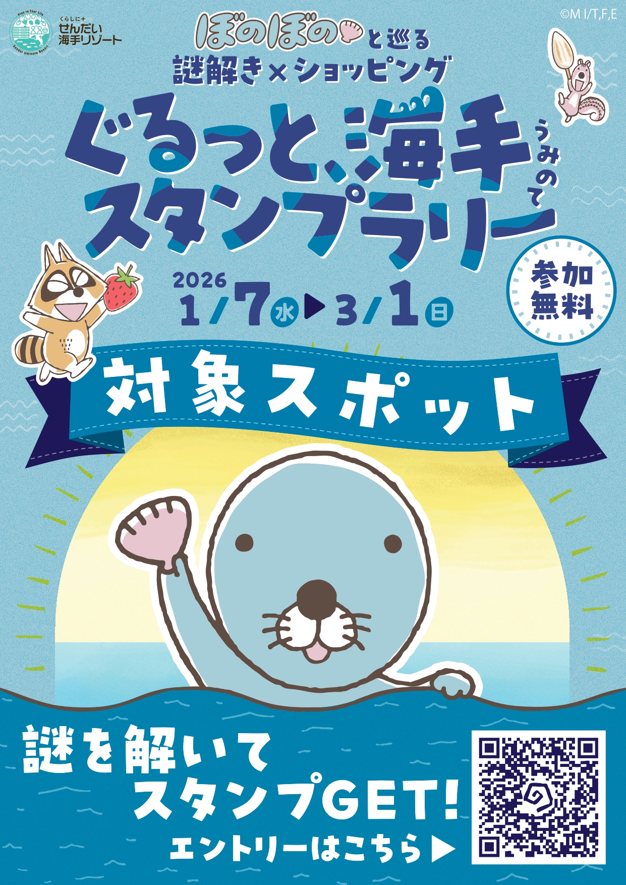 2026年1月7日(水)から「ぼのぼのと巡る 謎解き×ショッピング ぐるっと、海手スタンプラリー」がスタートしました。