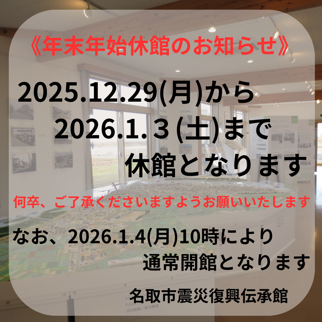 本年も名取市震災復興伝承館をご利用頂きましてありがとうございました。